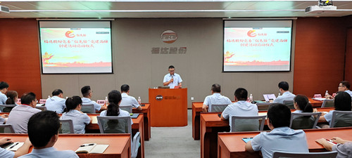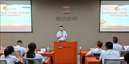 隨后,公司黨委委員陳達偉同志詳細介紹了“紅先鋒”黨建品牌的內涵、主要措施和實施要求等內容。他指出,“紅”是指打造紅色基因,讓黨建與企業發展同頻共振、互促共進,實現“黨建強、發展強”的目標;“先鋒”是代表行業特性,代表公司從事的是先進制造業,代表組織及隊伍特色,代表工作重點,鼓勵及倡導黨員、骨干和積極分子在攻堅克難方面主動發揮“先鋒”帶頭作用。同時,他從開展“立體學習”、打造“黨建+”體系工程、建立“三亮兩創”機制、實施“聚力行動”和加強宣傳陣地建設等5大方面詳細闡述品牌實施具體措施和要求,通過一系列創新舉措和扎實工作,努力將“紅先鋒”打造成為具有鮮明特色、廣泛影響力的福達黨建品牌。