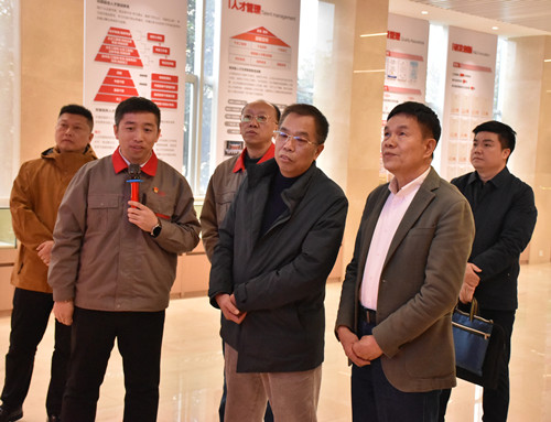 慰問團(tuán)一行人首先參觀了公司的黨建和企業(yè)展廳,黎福超向慰問團(tuán)一行人介紹了公司黨建工作、企業(yè)生產(chǎn)經(jīng)營和發(fā)展規(guī)劃等情況。