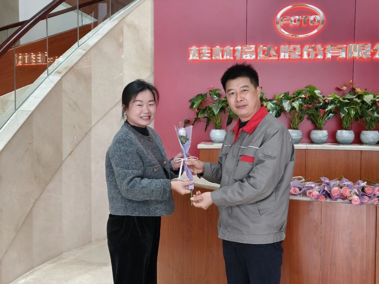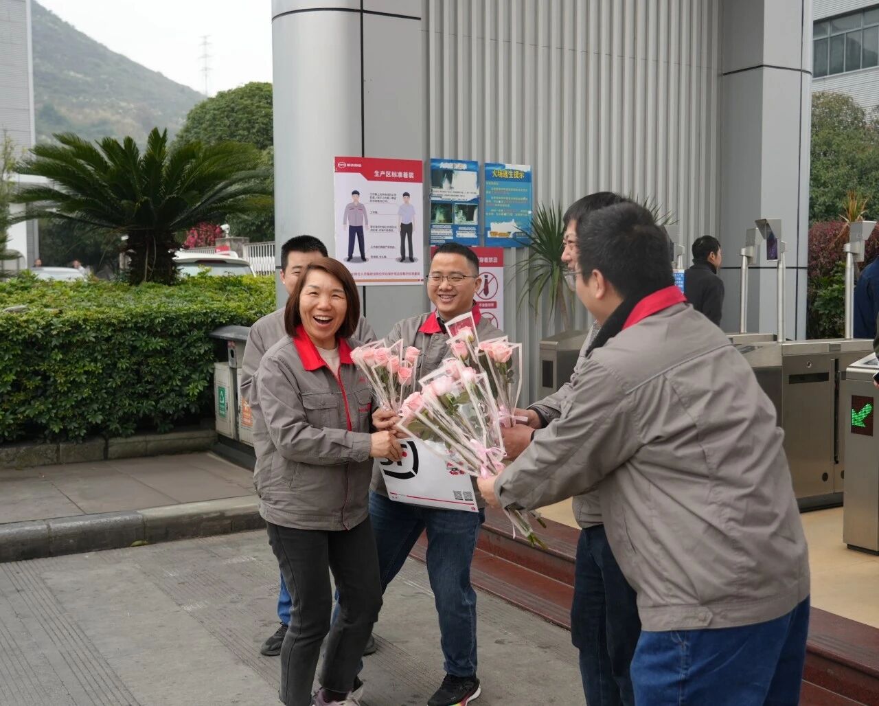 3月7日清晨,公司男領導們化身“送花使者”,早早守候在辦公樓、廠區入口。他們將一束束鮮花遞到每一位踏入公司的女員工手中,送去節日的第一縷芬芳與第一聲問候。這不僅是一份節日的儀式感,更是公司對“她力量”潤物無聲的深情致敬。